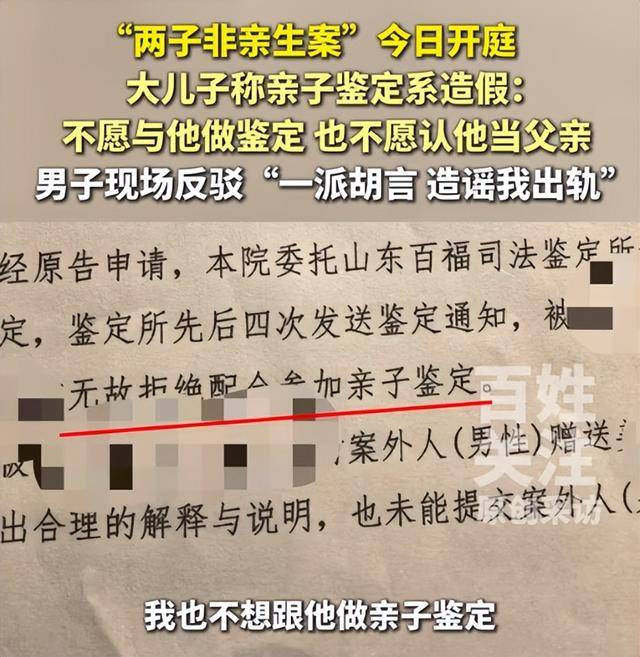 还有一直跳出来辩解的大儿子,他拒绝重做亲子鉴定的样子,把 “真实目的” 写得明明白白。
