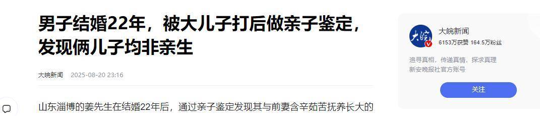 养了二十多年的儿子,竟然没一个是自己亲生的!