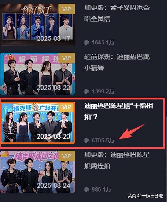 就像平时首播后,播放量大概在三千万左右的《你好星期六》,随着迪丽热巴、陈星旭和张俪来了后,“一晚”直接飙到了六千万多。