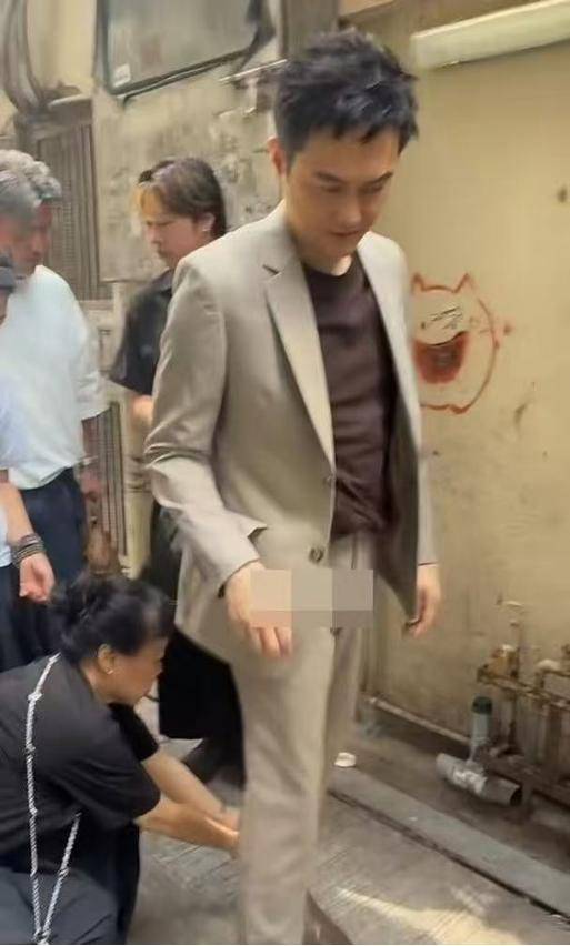 只见张智霖当日身穿米色西装,搭配咖色皮鞋非常帅气。可张智霖向前走了几步,突然停下由助手蹲下帮他整理裤脚,之后继续向前走去。