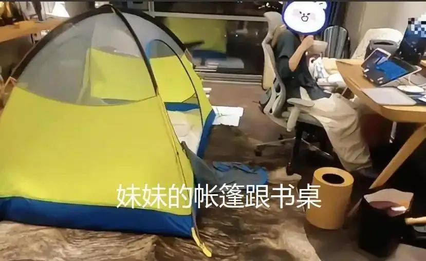 苗苗妹妹来了之后就只能在房子里扎帐篷: