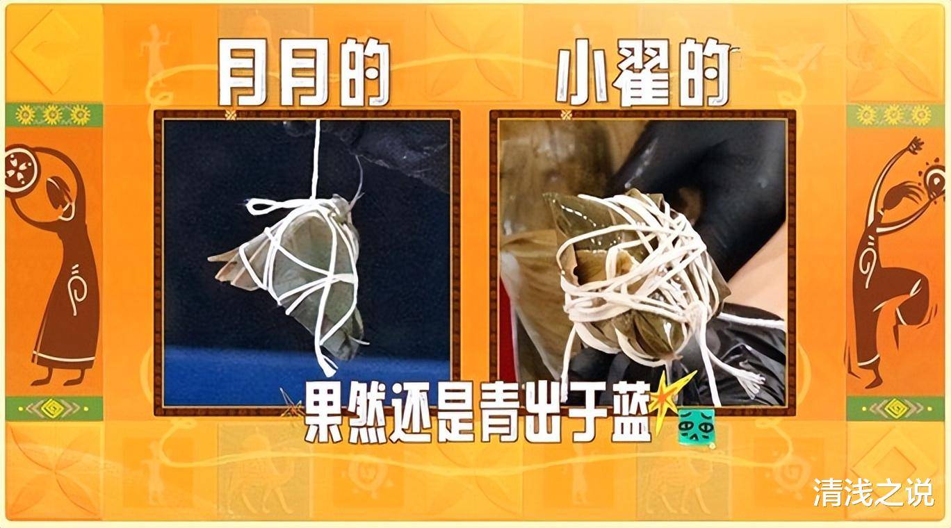 当他们转向姜妍学包粽子时,尹浩宇也已经包好了一个粽子,而沈月则迅速完成了自己的作品,翟潇闻顿时慌了,忍不住请求大家不要太高效,让他也跟上。尽管如此,大家包得正起劲,丝毫不想停下,沈月也不忘再次调侃翟潇闻:“你看,我就是你教出来的。”大家忍不住笑称翟潇闻的“徒弟”沈月更能包粽子,连姜妍也戏谑道翟潇闻的小名是“翟粽子”。就连节目组也跑出来调侃,称沈月为“粽师”的传人。