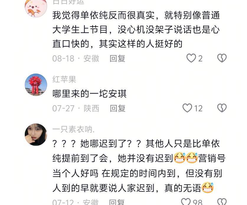 单依纯本来就没有迟到,没有犯错,只是为活跃气氛撒个娇,但她的模仿却明显带有恶意的感觉。