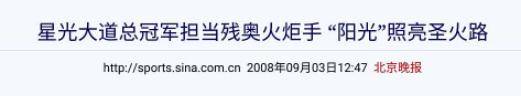 同年杨光当选北京 2008 年残疾人奥运会火炬手,还作为开幕式演唱嘉宾,演唱了自己的原创作品《欢聚北京》。