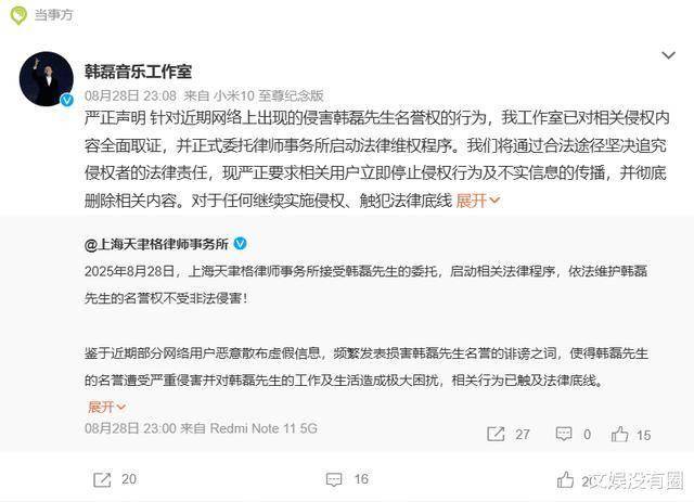 这一戏剧性转折,距离韩磊音乐工作室发布严正声明仅间隔数小时。工作室早前已强势回应,称已全面取证并委托律师启动法律程序,坚决追究侵权者法律责任,并要求立即删除不实内容。