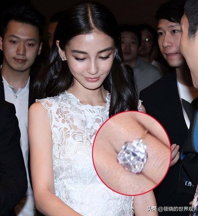 结婚时的梨型大钻戒重6克拉,甚至为了让杨颖体验公主般的出嫁,专门打造了皇冠。