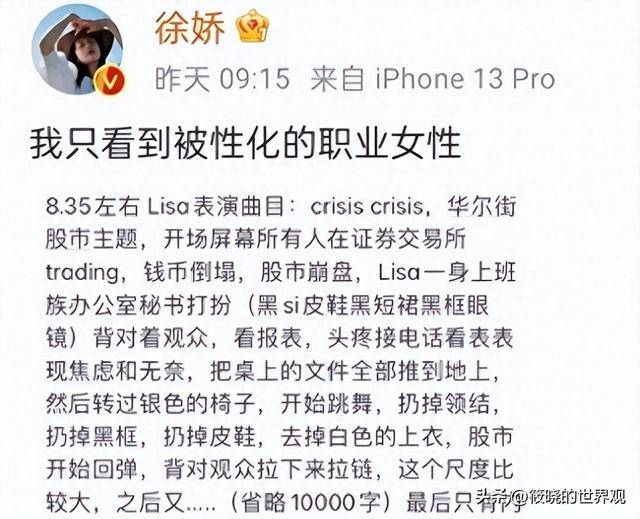 演员徐娇对疯马秀的评价一针见血,这也正是国内抵制看疯马秀的明星原因。