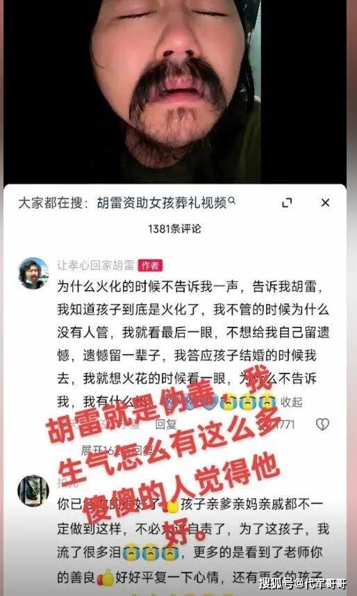 让矛盾彻底激化的,是家属拒绝胡雷见女孩最后一面的举动。胡雷在视频里控诉:“火化都不告诉我一声,我不管的时候你们怎么不管?” 可这番委屈的表态,不仅没换来同情,反而引来了更多指责,有理智的网友反问:“家属为什么不愿意见你?还不是怕你又带着镜头去拍,把孩子的葬礼变成新的‘慈善素材’?”