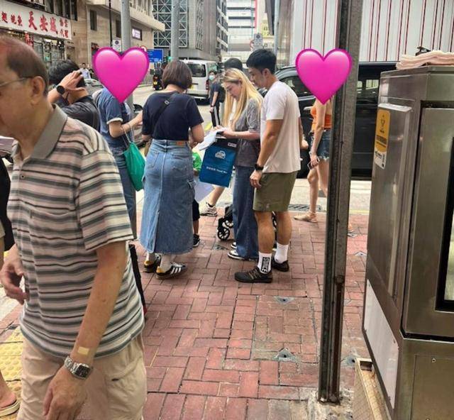 网友曝光出来的照片可以看出,梁兆楹在高温天气下轻装上阵,带着他们自己的爱犬在上环的街头上卖旗,不少热心的市民都有上前捧场去。