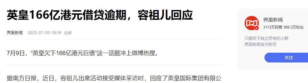 界面新闻《英皇166亿港元借贷逾期,容祖儿回应》