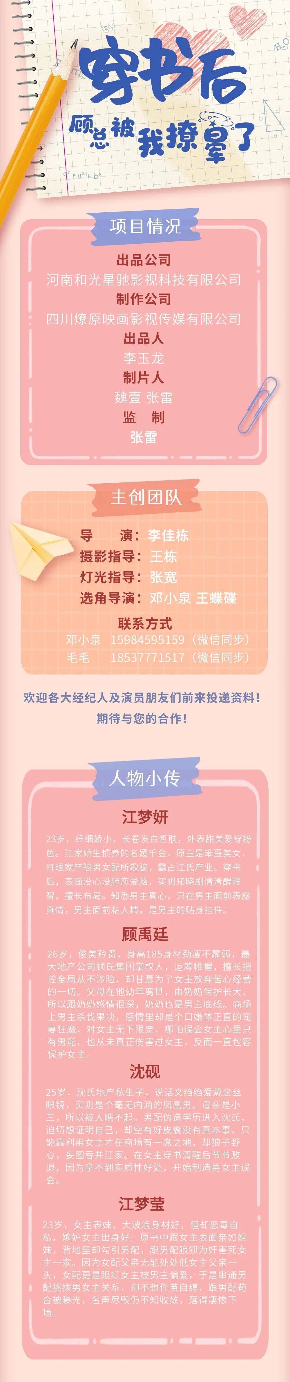 欢迎各大经纪人及演员朋友们前来投递资料!期待与您的合作!