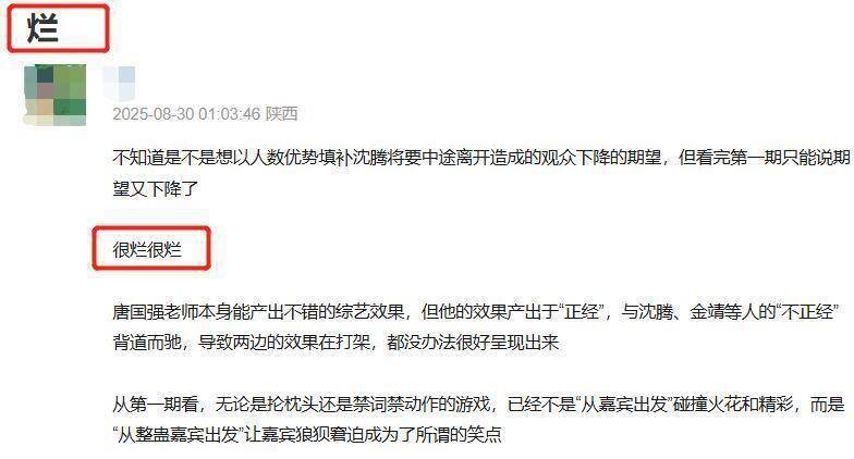在《王牌》的评论区,竟然有网友表示 “把唐国强踢出去就好看了”。