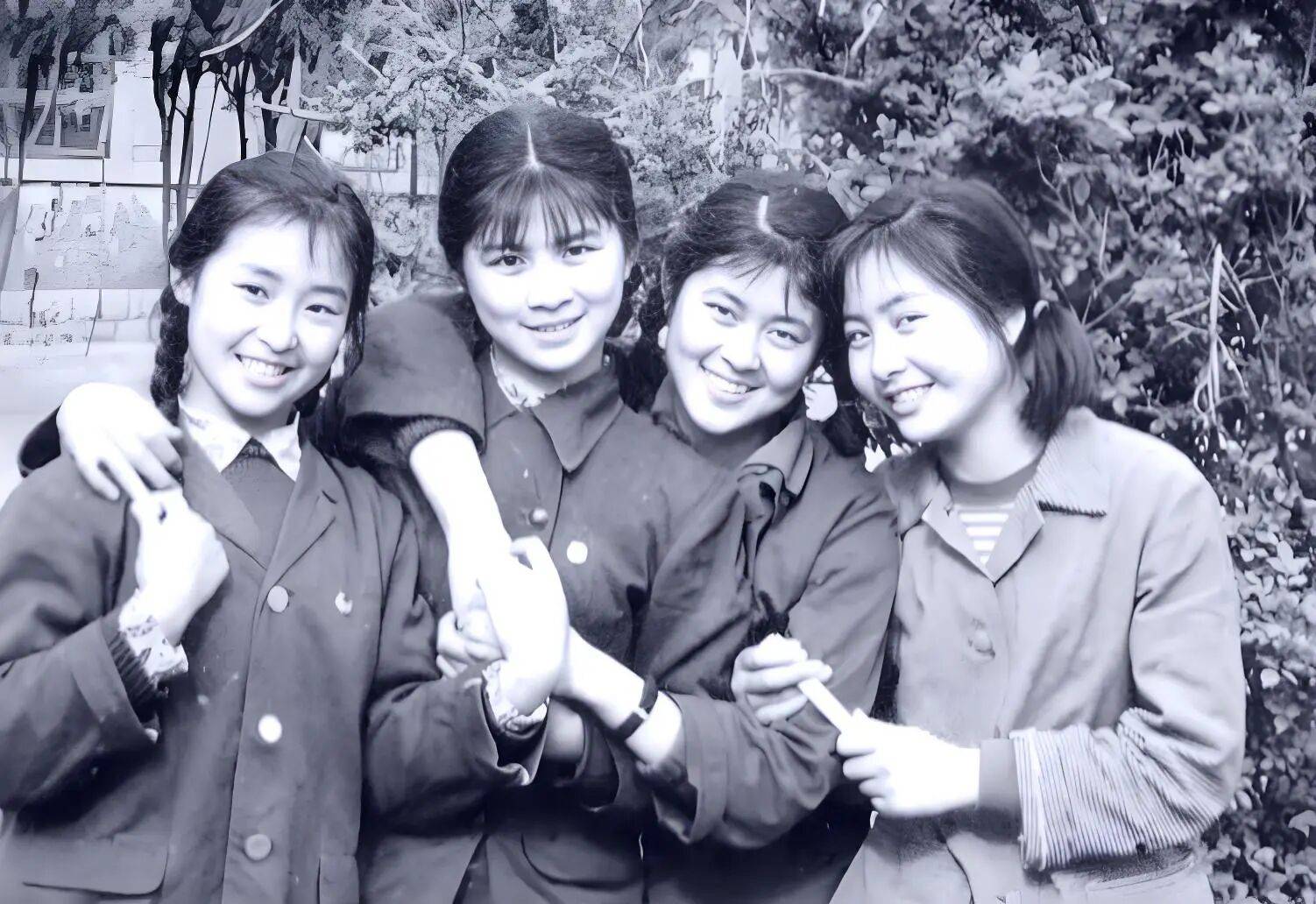 倪萍和同班同学迟蓬、牟卫红、赵娟娟