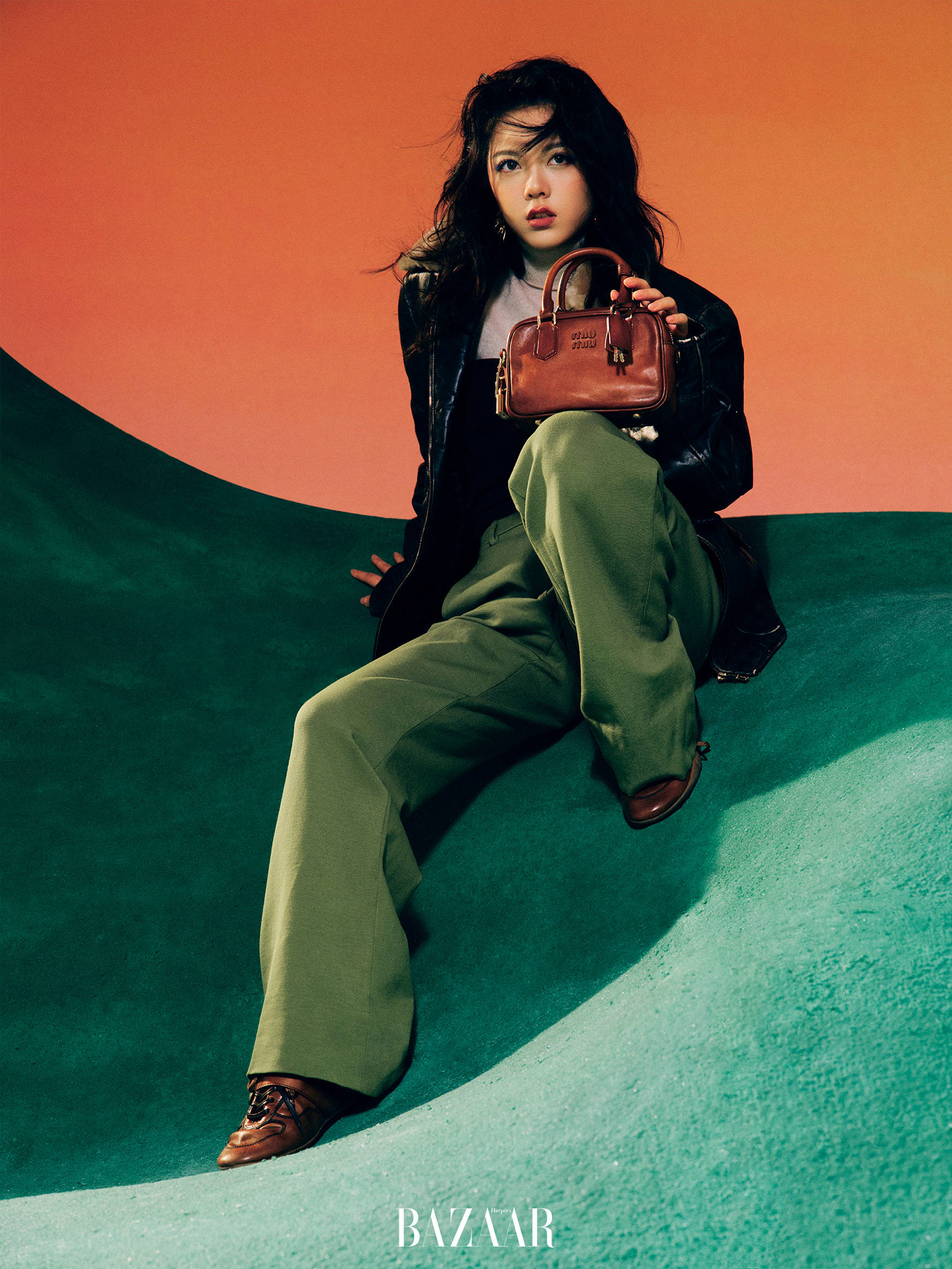 赵今麦手持棕色包包,姿态闲适。