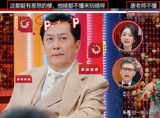 他73岁的脑回路,实在是跟不上一直做综艺的各位“有梗人”,让现场情况十分尴尬。