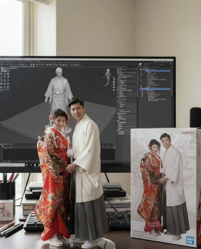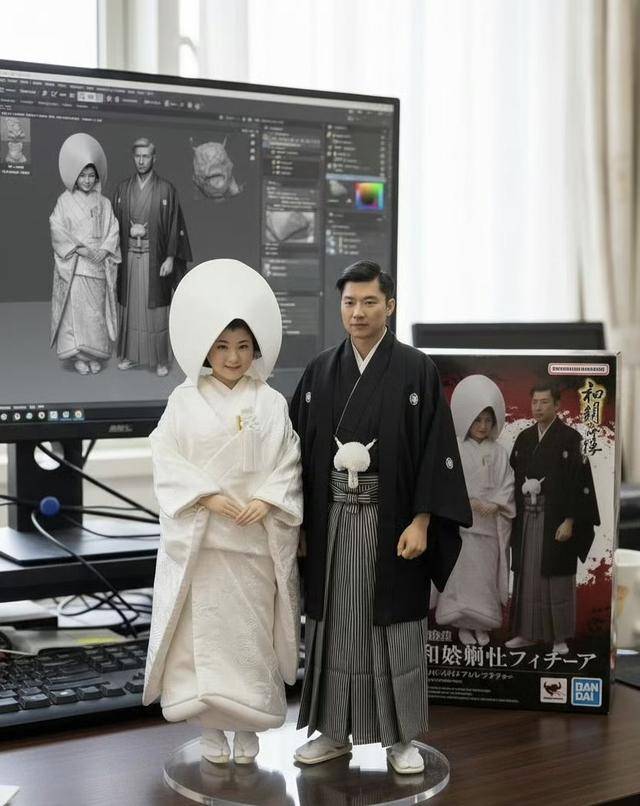 从李伟健的动态中看得出,他和妻子当年拍摄结婚照是穿着和服,二人的衣服一红一白,看起来很般配,由于手办和两人的结婚照差别不大,所以其妻子阿宝的模样也是获得了不少人的关注。