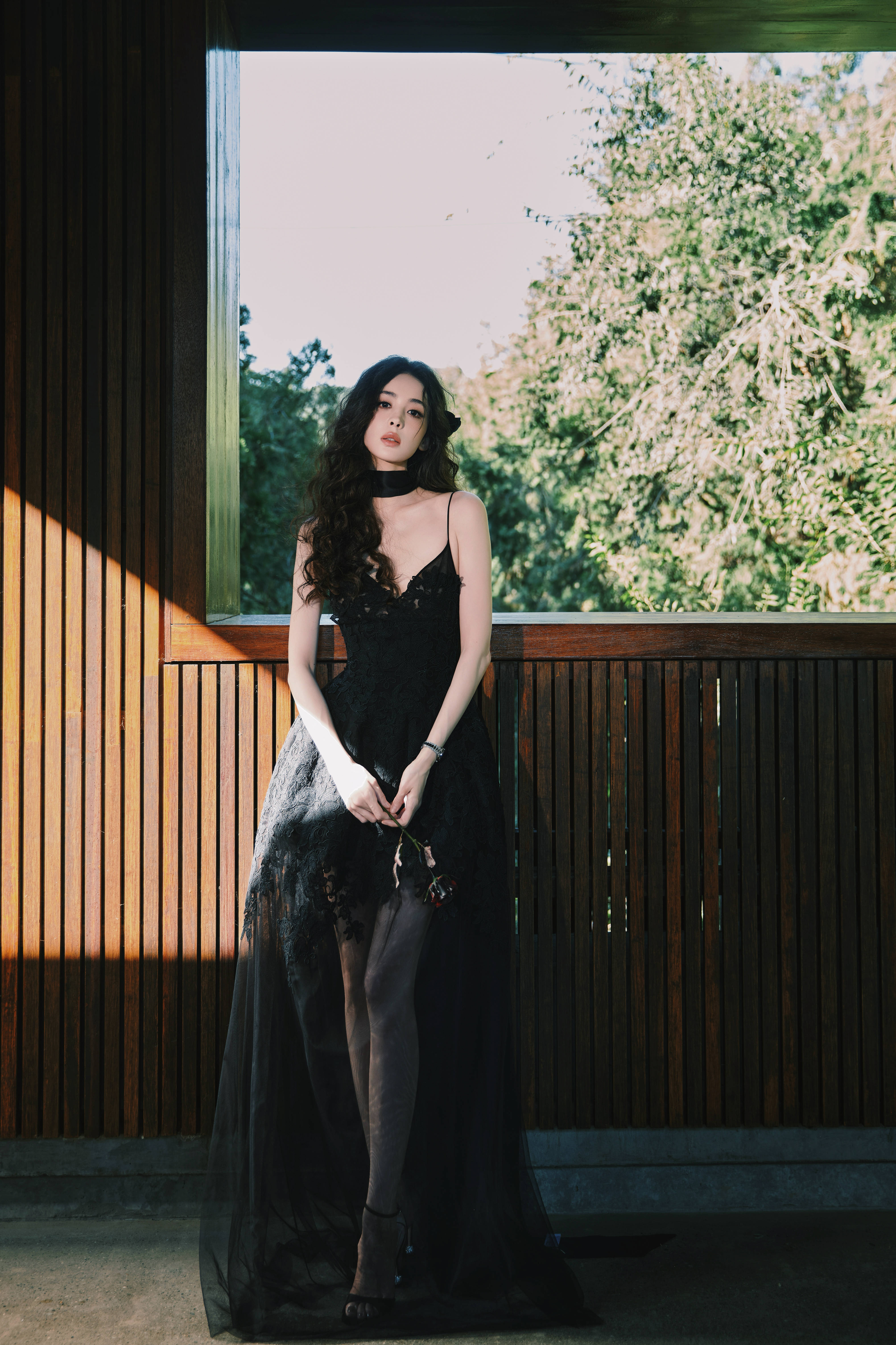 娜扎在光影中回眸,宛如文艺片女主角。