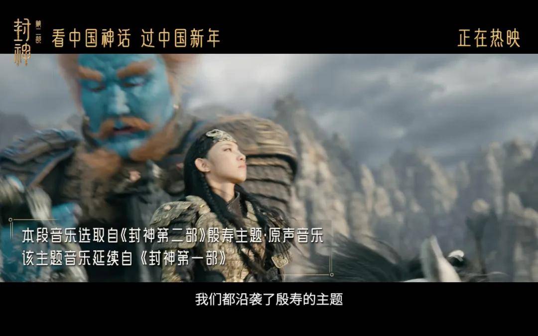 “在《封神第二部》当中,每一次邓婵玉、魔家四将率领殷商大军的出现,都沿袭了《封神第一部》商王殷寿的主题音乐,因为他们是代表商王殷寿的意志而来,也代表了朝歌的力量。”蒙柯卓兰介绍。