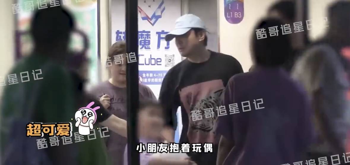沈腾的儿子抱着玩偶走出来,一家三口好幸福。