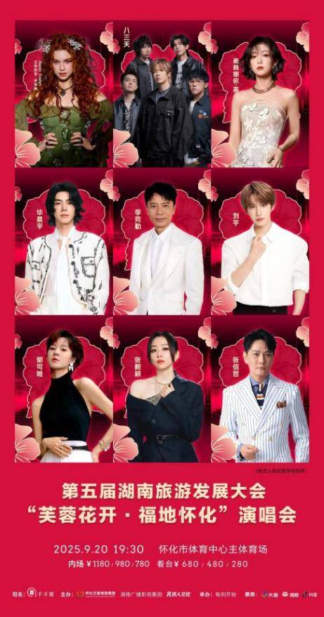 当山水怀化遇见华语乐坛星光,一场兼具文化温度与音乐激情的视听盛宴即将登场!“跟着歌手去怀化”演唱会已进入筹备倒计时,九组实力唱将集结完毕,9月20日晚19:30,将在怀化市体育中心主体育场,用歌声串联起这座城市的人文底蕴与青春活力!