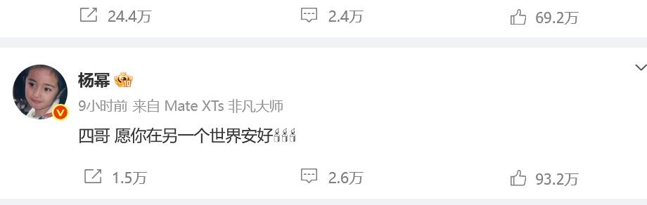 杨幂的第一反应是“四哥愿你在另一个世界安好”,没有过多修饰,文字简单却充满情感;张天爱回忆了10年前的初见,称“我从没想过今天要和你说再见”,那个夏天的果汁,成为她与于朦胧友谊的起点。