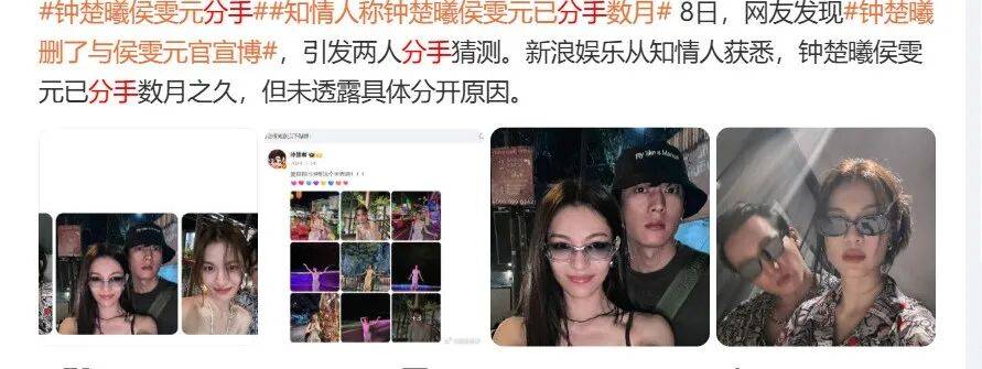 最近,有网友发现钟楚曦删了与侯雯元官宣博,引发两人分手猜测。