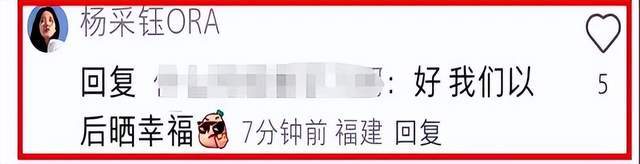 有网友直接留言说:磕到了!杨采钰火速在评论区回复:两个蓝色爱心。可见,现在的杨采钰对老公也不再遮遮掩掩了。