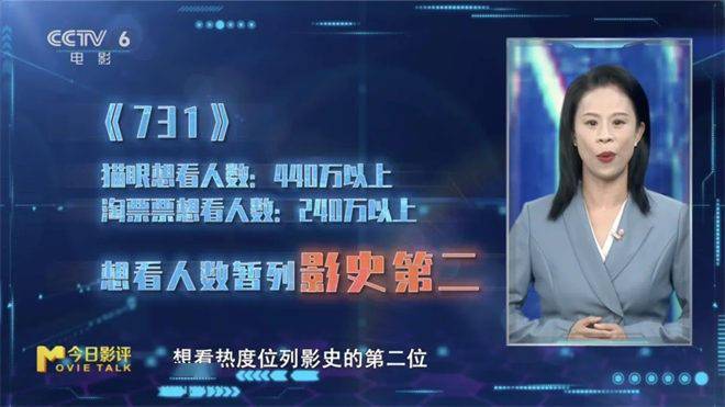 首先就是近期以超高热度被广泛关注的电影《731》。截至9月8日,这部电影已获得了超440万的猫眼想看数据,想看热度位列影史的第二位。