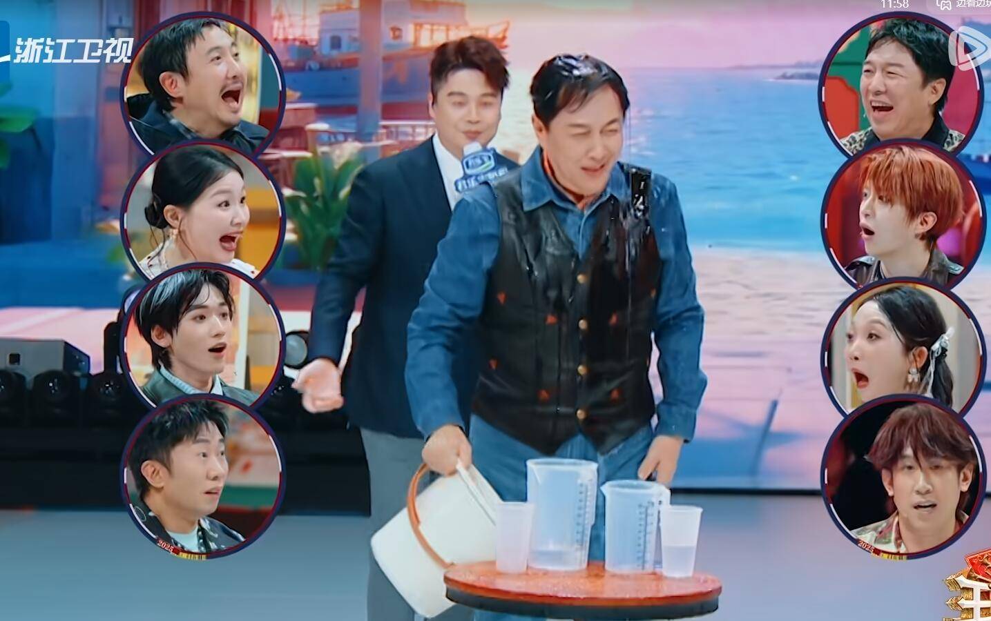 在这个关键时刻,唐国强直接跑上去拿起水桶喊出口号,自己浇了自己一身水。