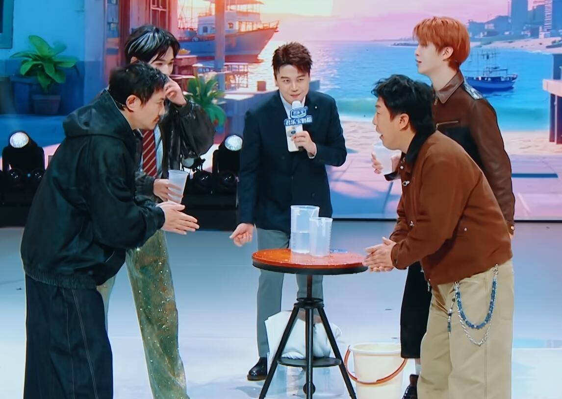 看到范丞丞不回答,大家直接拿起水杯泼他,这个游戏到此结束。