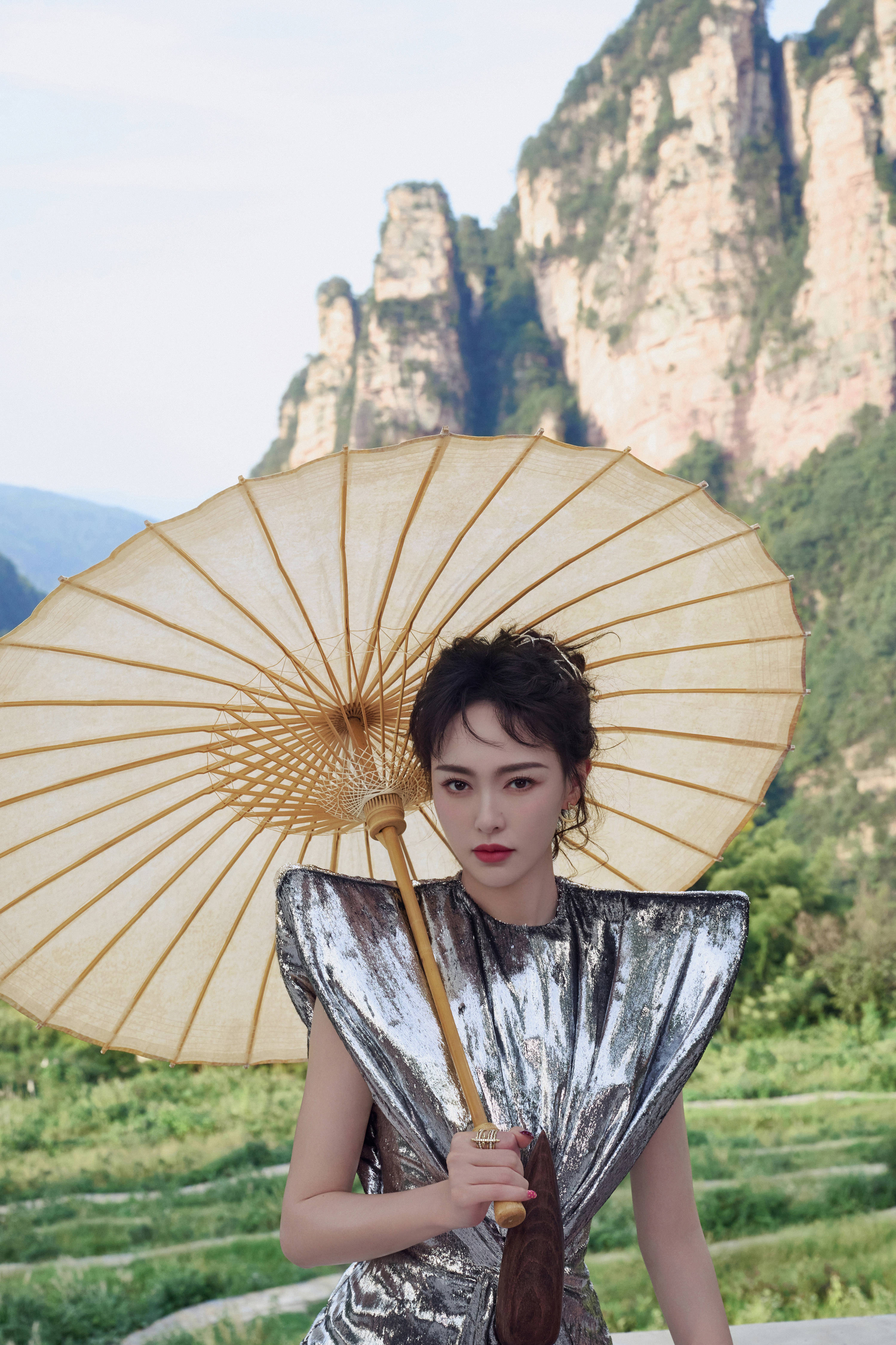 搜狐娱乐讯 9月16日,唐嫣的一组时尚大片曝出。图中,唐嫣穿着银色个性长裙,手持油纸伞,眼神酷飒。
