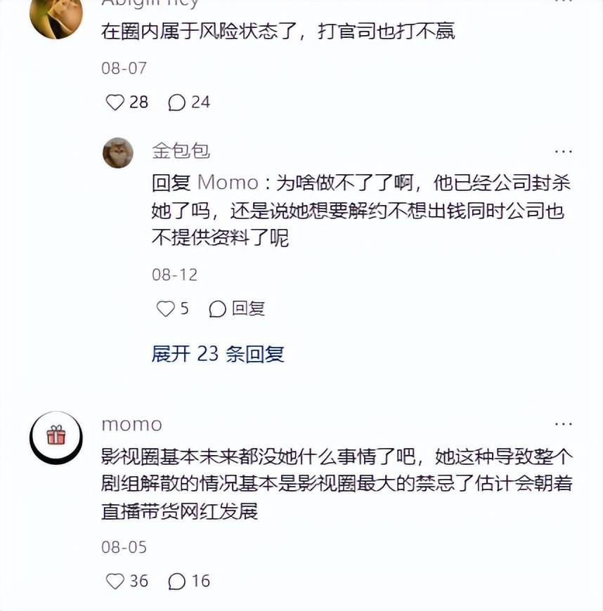 赵露思这边同样不乐观,跟经纪公司撕逼后又沉寂了那么久,如果以后被圈内避雷的话,可能连普通明星都赶不上。