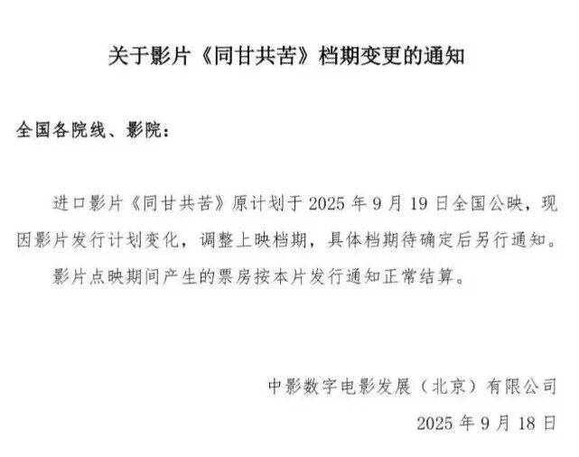 鱼叔之前分享过的电影《同甘共苦》,本要这月上映内地院线。