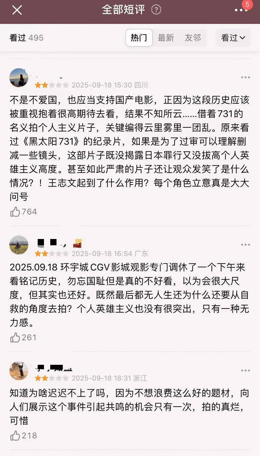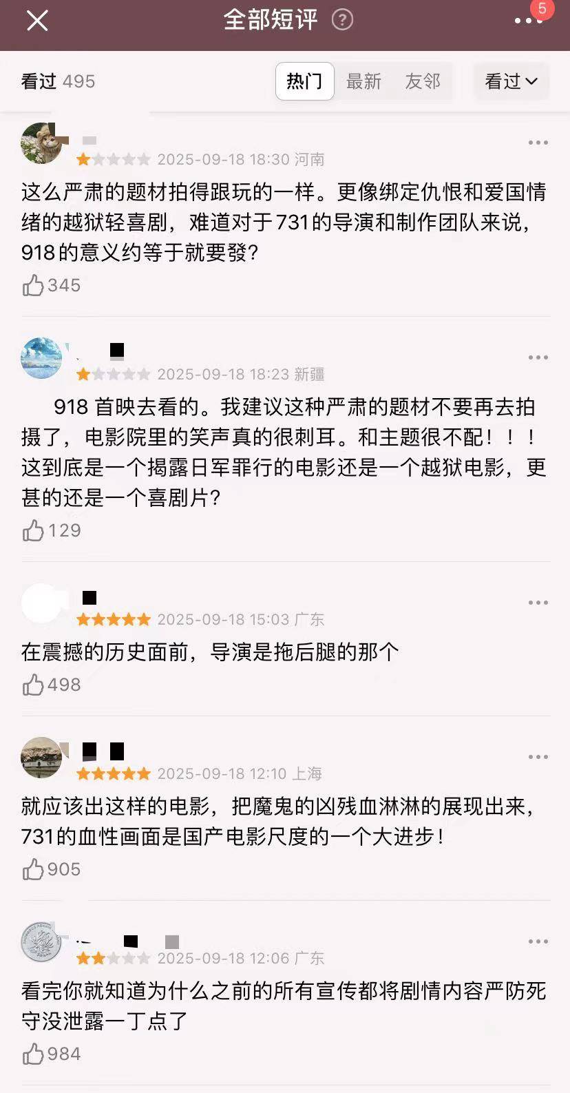 从观众的反馈来看,电影拍得不够严肃,因为这不是一般的题材,这是反抗侵略的大戏,怎么可能会出现笑声?