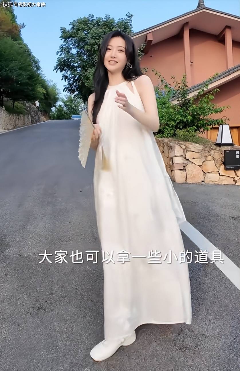 穿上长裙和平底鞋之后,景甜的外八字才算是不那么明显,但要仔细看还是能看出来的。