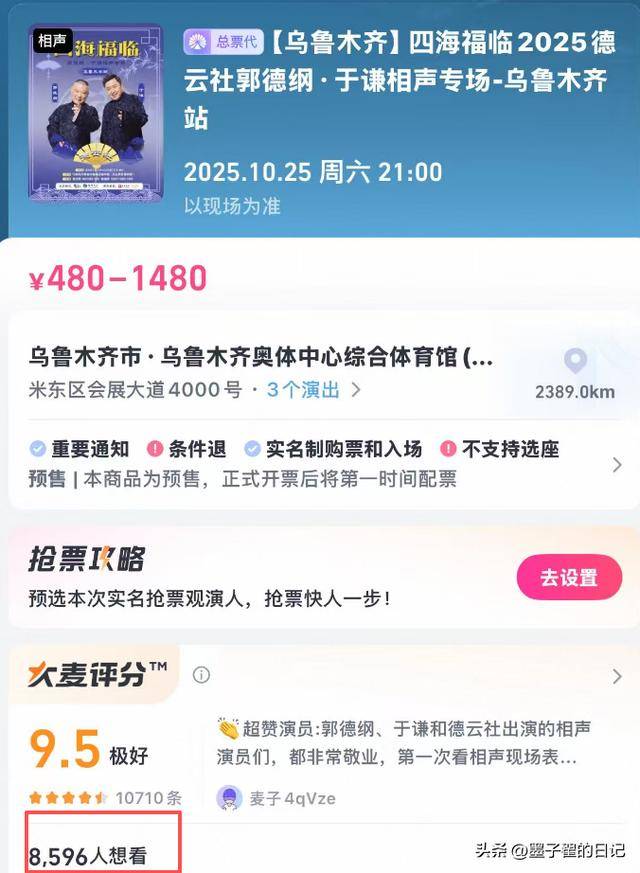 可另一边郭德纲和于谦的相声专场,却十分热闹,光是想看的人数都已经超过了8596,看来这名声再大,也抵不上观众不领情。