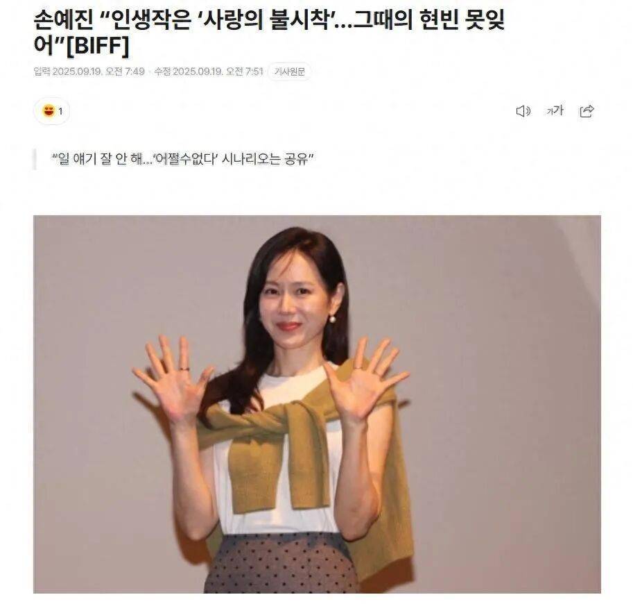 “幸福的瞬间太多了——为什么一想起来就忍不住笑呢?”,43岁的孙艺珍在釜山国际电影节“演员之家”对谈环节中,面对中国粉丝关于《爱的迫降》的提问,毫不掩饰自己对这部作品的特殊情感。她甚至直接坦言,这部与丈夫玄彬定情之作,就是她无可替代的“人生作品”。