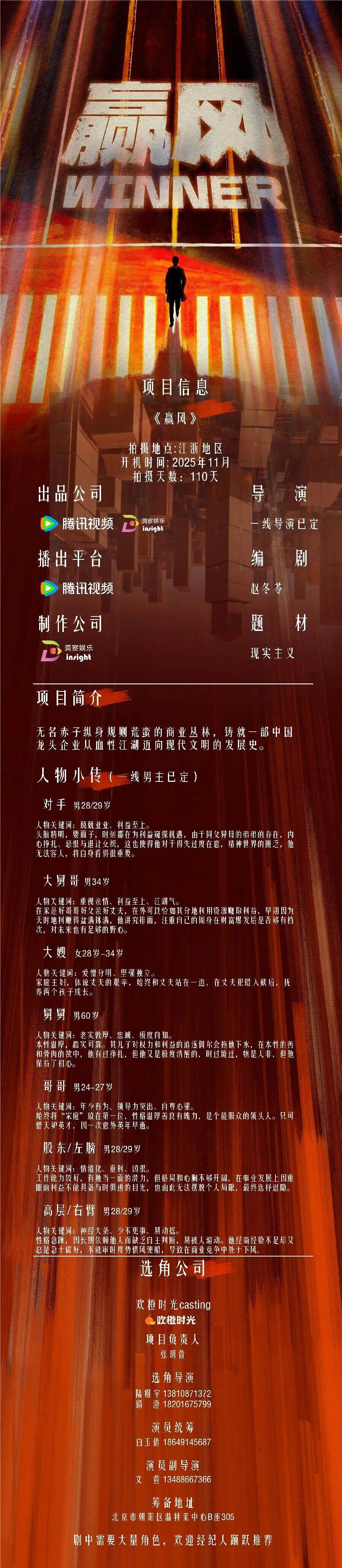 免责声明:戏客Seeker公众号(“本平台”)中全网组讯的信息、内容(“组讯信息”,包括但不限于影视项目名称、项目介绍信息、出品公司信息、导演信息、选角团队信息、拍摄相关信息、联系方式等)均来源于内容信息相关方提供或互联网公开信息。本平台不对组讯信息的真实性、准确性、完整性、及时性、关联性、适用性及安全性提供任何明示或默示的担保。请您谨慎参考或使用组讯信息,并确保您的人身、财产安全,本平台不对您使用或参考组讯信息而造成的后果承担任何责任。