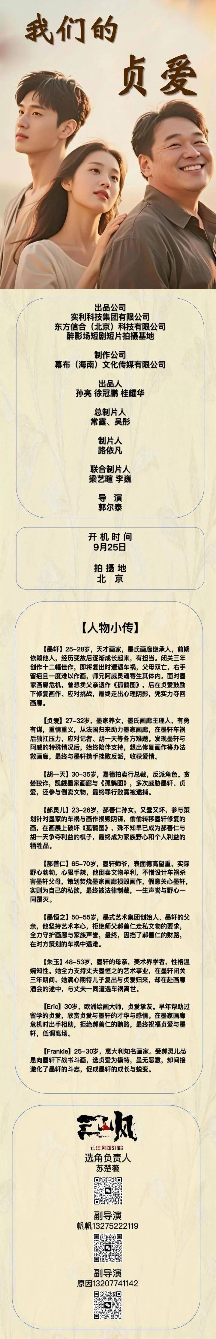 剧中需要大量角色,欢迎经纪人踊跃推荐。