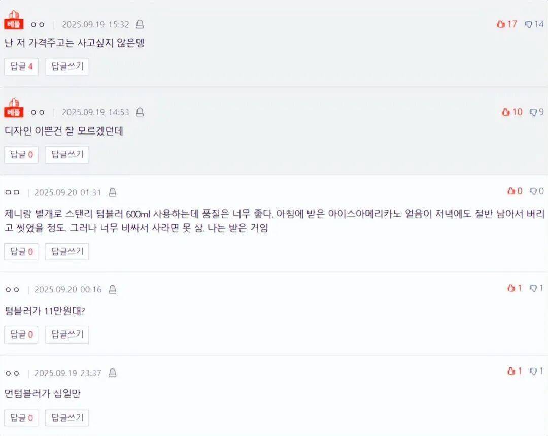 然而火爆销售的另一面,是网络上的激烈争议。在Nate Pann等韩国论坛,不少韩网友对这款“天价杯子”的设计和定价提出质疑。有人直言“不想花这个价钱买它”,也有人吐槽“实在不觉得设计有多好看”,更有网友直接发问:“什么杯子能卖11万韩元?”