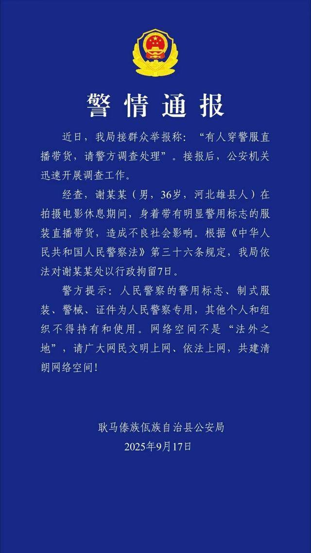 穿警服直播,不断爆粗口本文信源来自权威报道【央视新闻】【潇湘晨报】【谢孟伟个人资料】(详细信源附在文章末尾)。为提升文章可读性,细节可能存在润色,请理智阅读,仅供参考!