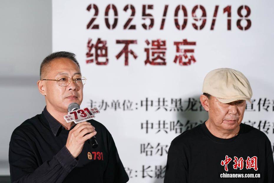 9月17日,电影《731》全球首映式在哈尔滨市哈东万达影城举行。首映式以“不能忘·不敢忘·不会忘——铭记历史珍爱和平”为主题,开启一场跨越时空的历史对话。据悉,影片讲述了1945年抗战胜利前夕,侵华日军第七三一部队在哈尔滨市平房区以“给水防疫”为名,秘密进行惨无人道的细菌战研究,大肆抓捕平民进行活体实验,妄图以此扭转败局。该电影将于9月18日起,在全球多地上映。图为受害者遗属代表王选才在首映式现场发言。中新社记者 赵宇航 摄