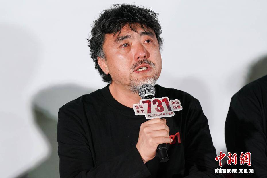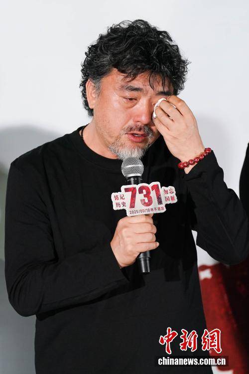 9月17日,电影《731》全球首映式在哈尔滨市哈东万达影城举行。首映式以“不能忘·不敢忘·不会忘——铭记历史珍爱和平”为主题,开启一场跨越时空的历史对话。据悉,影片讲述了1945年抗战胜利前夕,侵华日军第七三一部队在哈尔滨市平房区以“给水防疫”为名,秘密进行惨无人道的细菌战研究,大肆抓捕平民进行活体实验,妄图以此扭转败局。该电影将于9月18日起,在全球多地上映。图为导演赵林山在首映式现场落泪。中新社记者 赵宇航 摄
