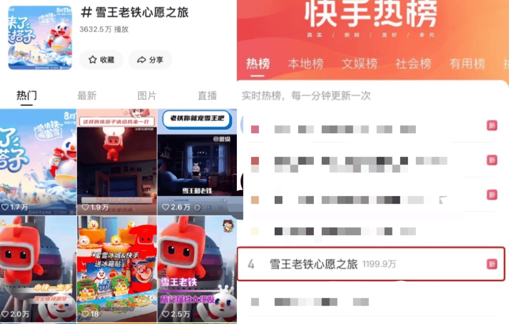 快手原生UGC内容生态让平台形成了独特的老铁文化,而蜜雪冰城也具备扎根街头巷尾的普惠定位,双方的强强联名,放大了“活人感”。