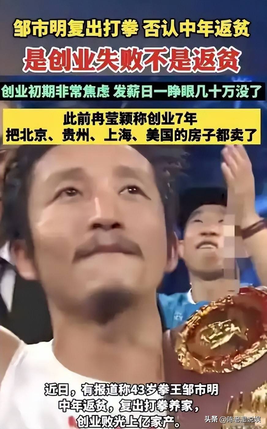 2023年,早已退役的邹市明甚至重进“拳坛”,不少人都质疑他是为了还债。