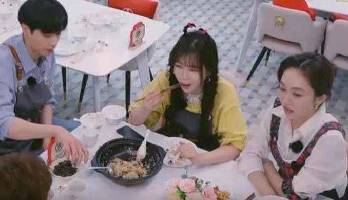 事情是这样的:有一位当红的小花——虞书欣,在节目中不小心用错了筷子,她用自己的筷子去夹菜,不是用公筷。就这么一个小举动,竟然让她登上了热搜榜!