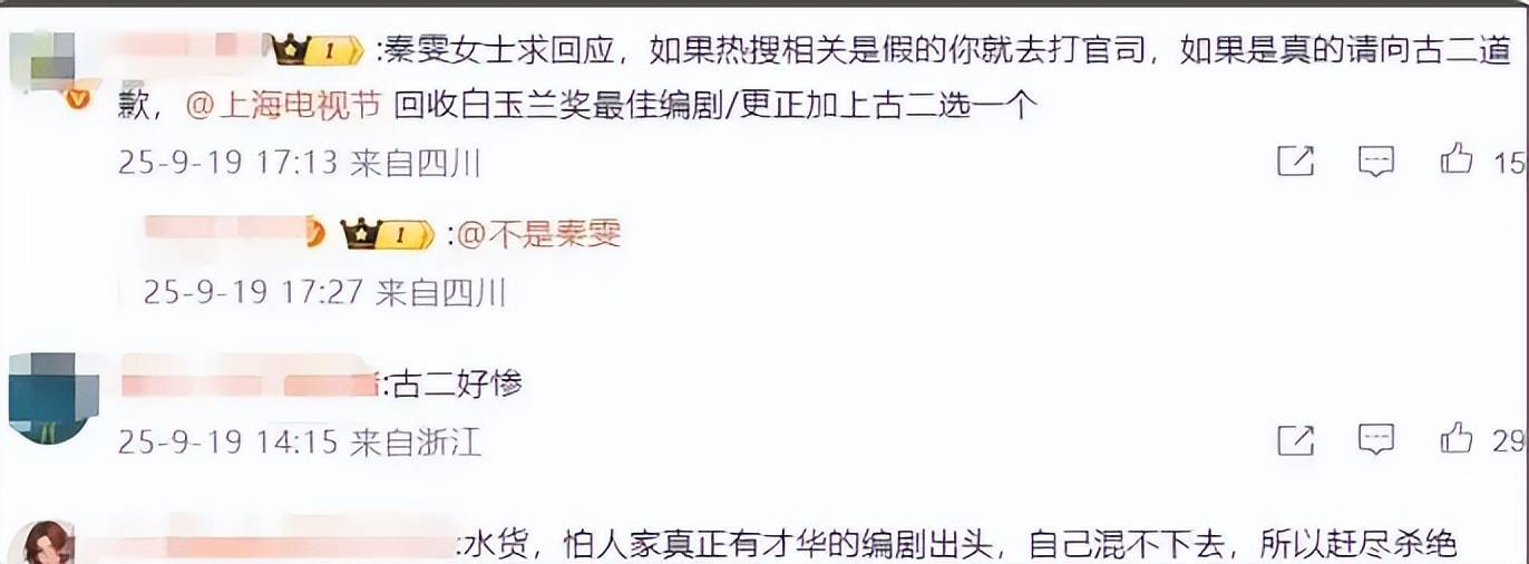 网友呼吁白玉兰奖调查署名真实性,考虑撤奖或追加古二署名。但是,古二能否依据《著作权法》主张权益成焦点。