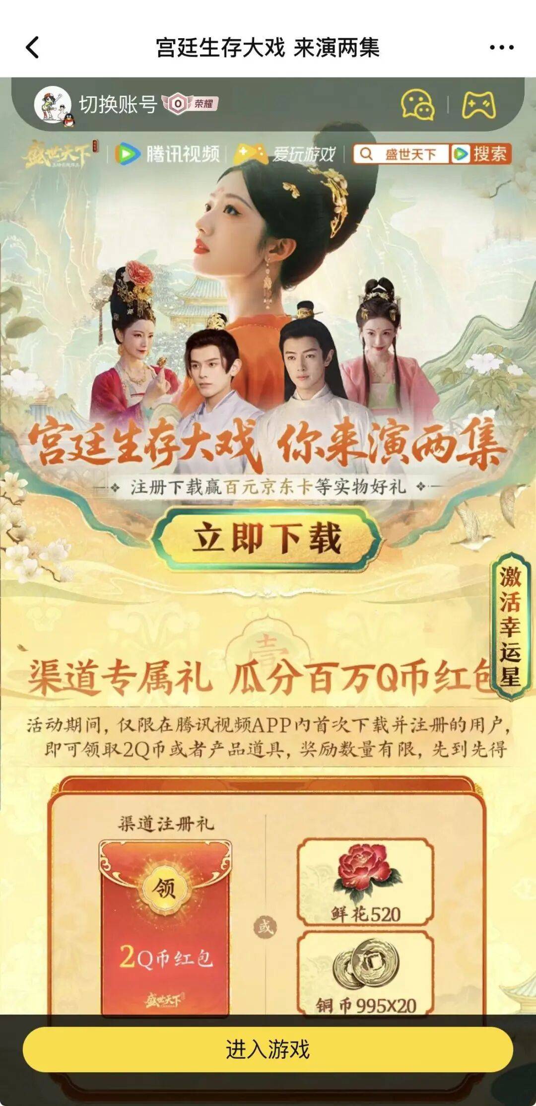 小娱身边有许多不玩互动影视的普通人,但Ta们还是被《盛世天下》刷了屏。Ta们可能是电视剧的受众,因为配角辩积的演员梓渝入了坑。Ta们也可能是《王者荣耀》的粉丝,限时语音联动吸引了更多的注意力。《盛世天下》的宣发真有钱,是Ta们的体感。