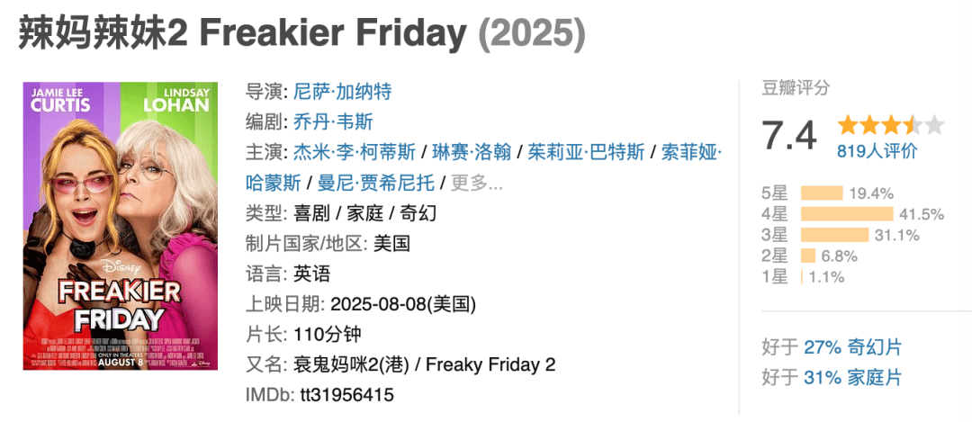不过,本片主要的卖点还是主打老友重聚,宣传方面也一直以原班人马回归作为话题,不但杰米·李·柯蒂斯与琳赛·洛翰两位主演可以在续集又一次合作。