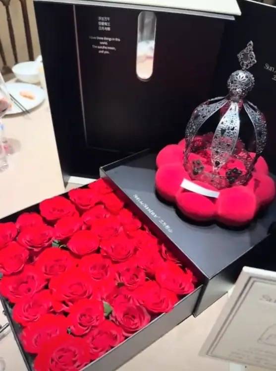 生日宴上除了大蛋糕,还准备了一个精致的小蛋糕。打开这个蛋糕盒子、里面是红色的小蛋糕,下一层是玫瑰花,看着就特别用心,这样的小惊喜真令人感动。